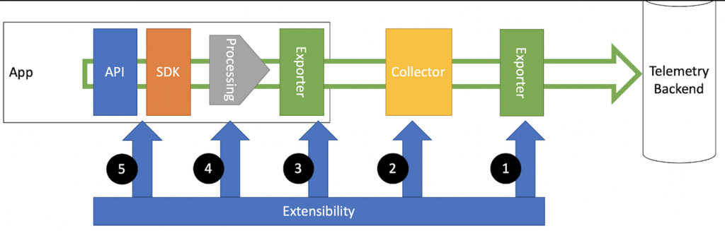 Exporters: Send processed telemetry data to monitoring and analysis systems.
