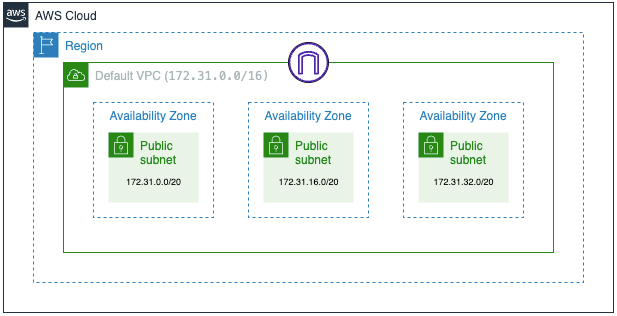 | Default CIDR block for default VPC | 172.31.0.0/16 |