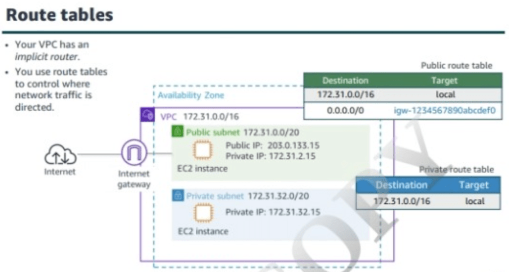 Route table –> attached to a subnet
