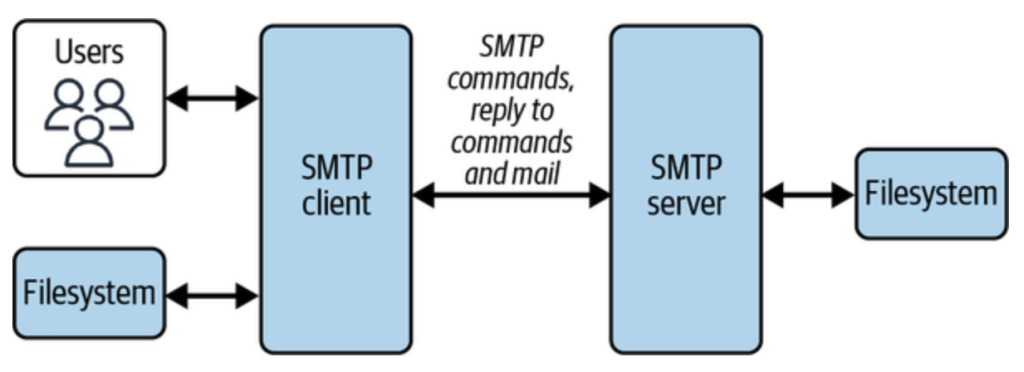 The SMTP client identifies the mail domain (such as gmail.com, hotmail.com, etc.) and then establishes a two-way stateful channel to corresponding SMTP server(s).