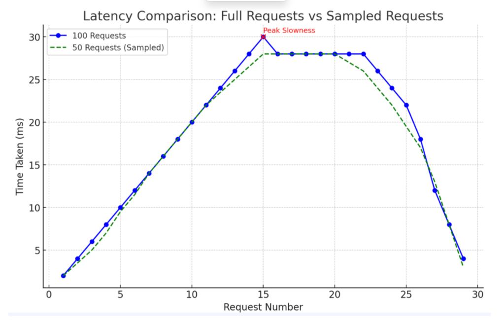 Below Graph shows that sampling will not miss indicating the slowness seen in latencies.